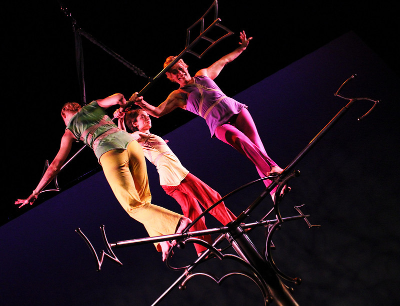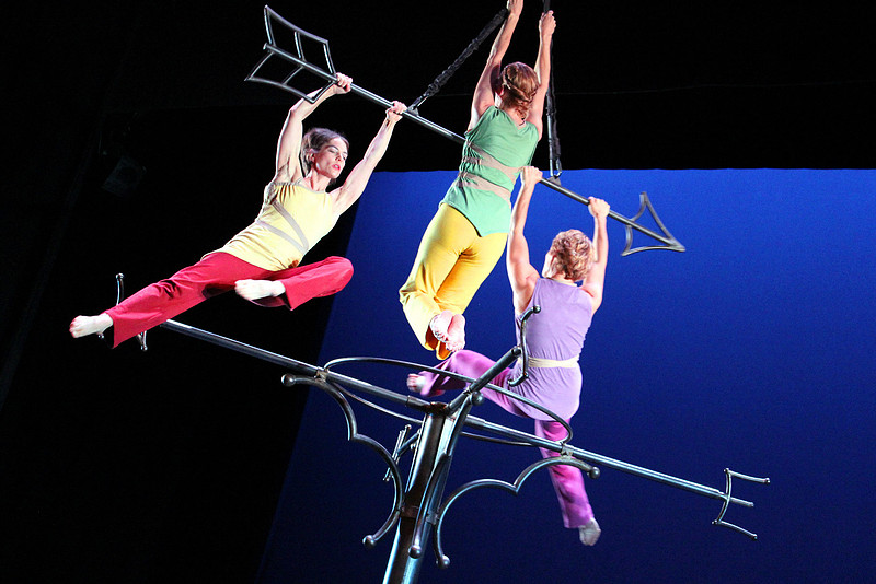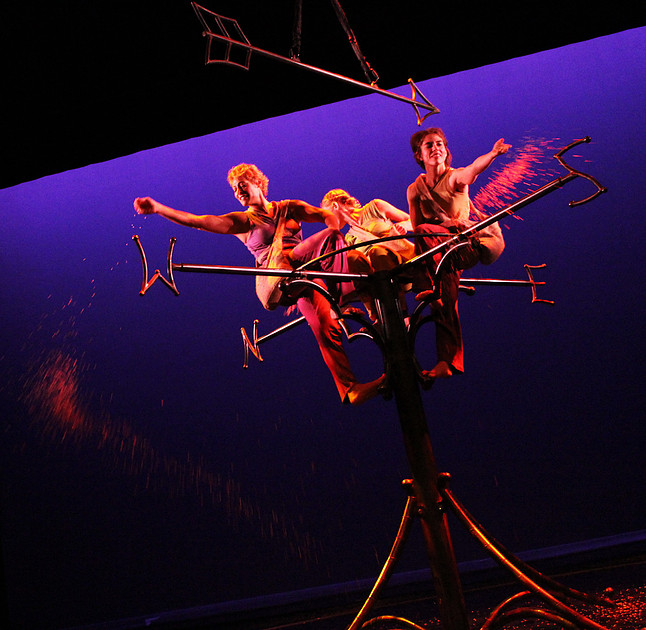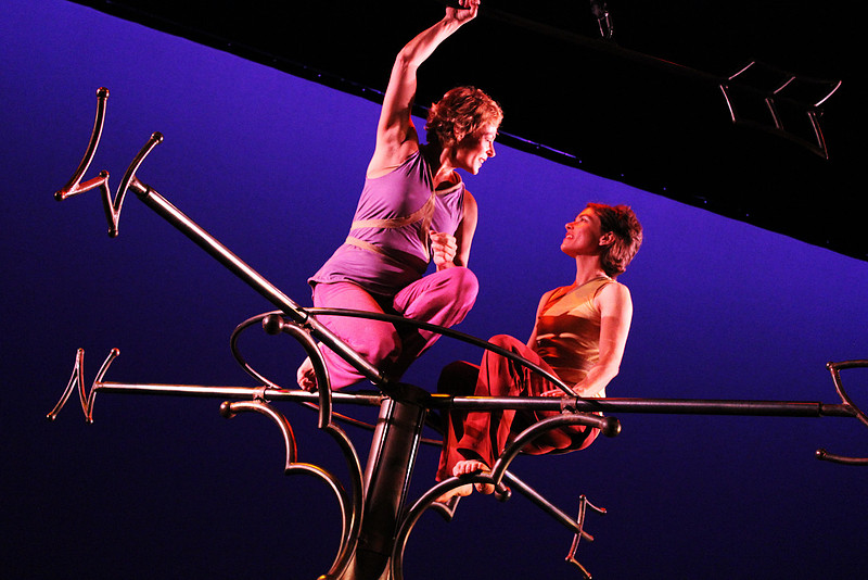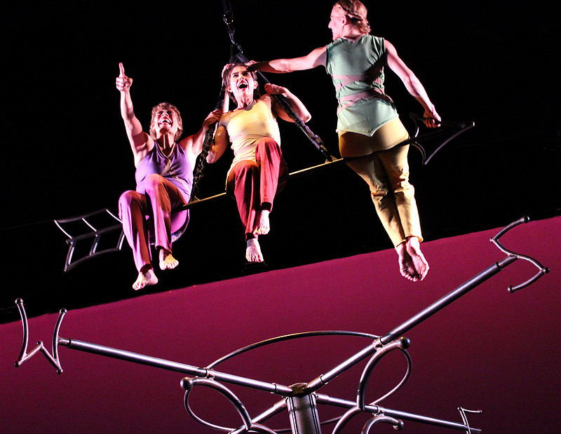 As I listen to the original script, written by Mara, and watch the precision of this aerial work (each bicep more impressive than that last) I am delighted to be a part of this world. The creativity, commitment, and courage of artists like this ensemble is what good theater is all about. Coming at old stories from a completely different perspective...(the air, in this case) but also infusing it with YOU. The piece is rich with personal experience and it shows in the performances.