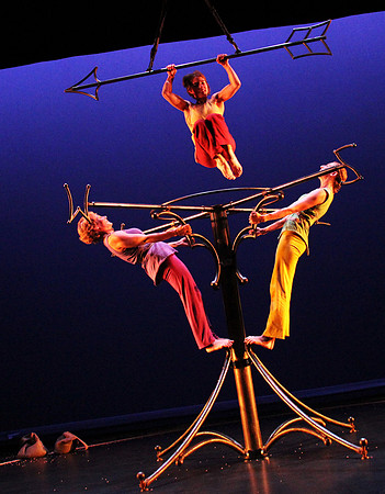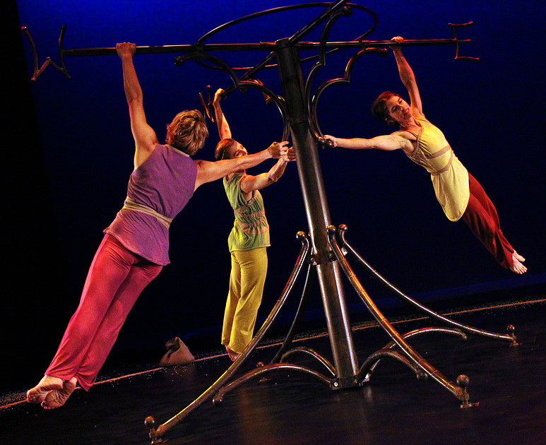 Whenever I watch this work, there always seems to come a time where I realize, "holy shit, they could really get hurt up there!" No harnesses, no lines. This is kinesthetic awareness on steroids. Mara, Andrea, and Sharon hold onto the arrow, literally running and jumping from point to point. I sit up a little straighter, the least I could do is have some good posture down here.