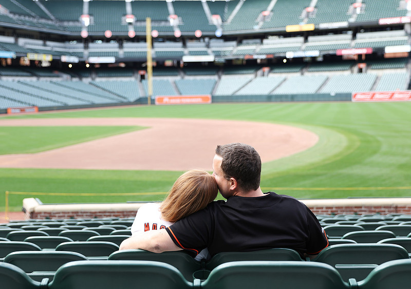 I don't know if it gets much cooler than being on the field at Camden Yards for engagement photos. Bobby was overcome, with that "I love baseball" sparkle in his eye for days leading up this photoshoot. We live only a mile and a half from the stadium, and love going to games, but to get to be alone on the field is something else!