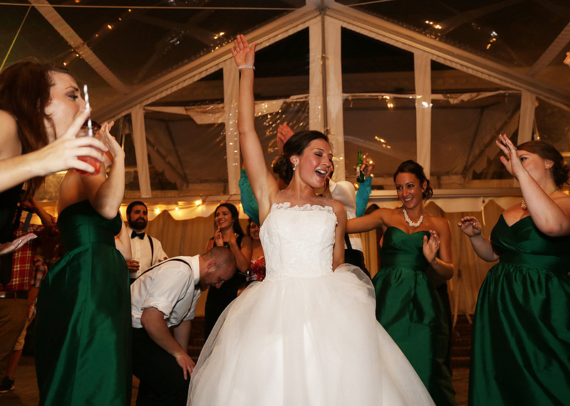 After waiting out the storm with some relaxation and romance in the bridal suite, the happy couple joins the party. And what a party it is. Spirits are high, and are being enjoyed. The heat doesn't keep people off the dance floor, including Martha, who dances all night. Delicious dinner and cake, an epic garter and bouquette toss, a night filled with love and fabulous people.