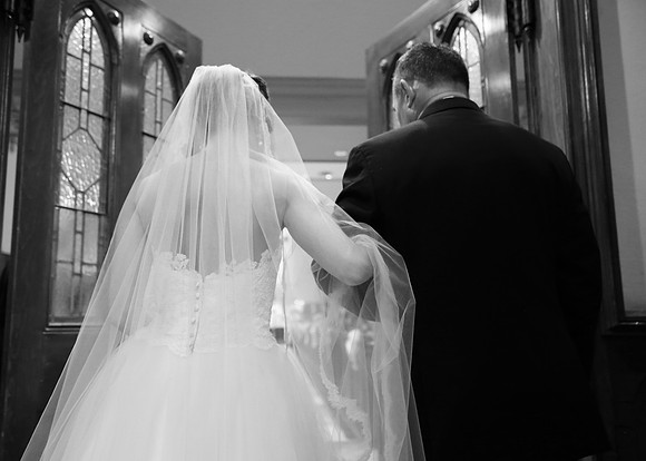 The ceremony at St. Mary's is lovely. The bride and groom cannot take their eyes off each other, there is so much love between these two.