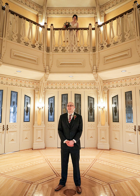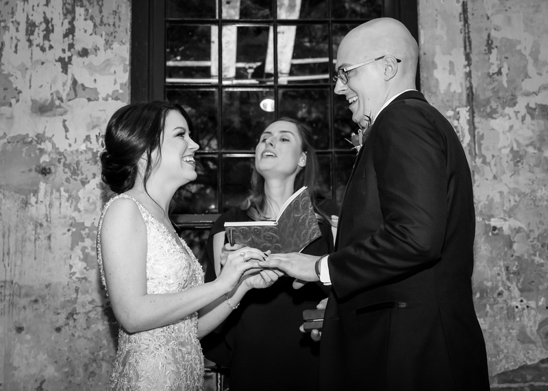The engagement session at Rock Creek Park included their two dogs, who are fantastic. This creative couple took photos from that shoot and used them to design labels for bottles of beer, which they brewed, and gave out as wedding favors! I love that kind of personal touch and this wedding at the Mt. Washington Mill-Dye House was full of gorgeous and hilarious details, like t-rex cake toppers!